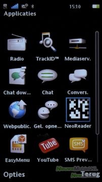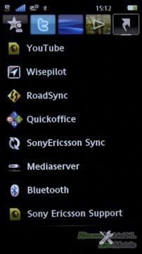 De programma’s PlayNow, media en kalender zijn direct in het menu te openen. PlayNow opent een pagina in de browser, en is een soort appstore van Sony Ericsson. In het mapje apps staan de programma’s radio, trackid, mediaserver, chat, conversaties, webpublicatie, geluidsrecorder, neoreader, YouTube, SMS preview en Facebook.