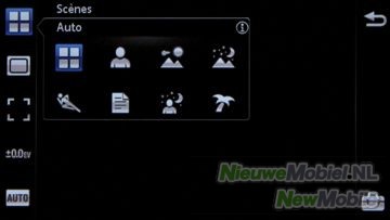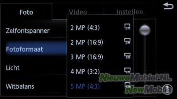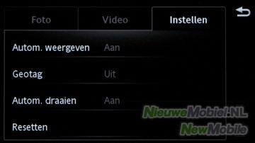 In de videomodus kunnen in het zoekvenster nachtmodus, microfoon, focus en belichting aangepast worden. bij de uitgebreide instellingen staan zelfontspanner, video-indeling, licht, witbalans en effecten.