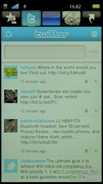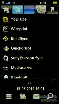 De Sony Ericsson Vivaz draait op Symbian OS Series 60 5th Edition, en bij het opstarten doet het ons niet meteen denken aan de touchscreen versie van Symbian die we gewend zijn. Het grootste verschil is het beginscherm of eigenlijk het gebrek aan één, want er zijn 5 verschillende tabs die kunnen worden geraadpleegd bovenin het scherm. Deze 5 verschillende tabs kun je op een aantal manieren inrichten. Zo kun je er voor kiezen om een lege tab met een flow animatie, wallpaper of een flash animatie in te richten, of één met 8 snelkoppelingen naar veelgebruikte programma’s, er is een twitter tab, een tab voor het camera-album en als laatste een tab voor favoriete contacten. Het schakelen tussen de tabs gaat soepel en er is nagenoeg geen vertraging. Naast schakelen door op de tabs bovenin te drukken, is ook een horizontale veeg over het scherm mogelijk om te navigeren tussen de tabs.