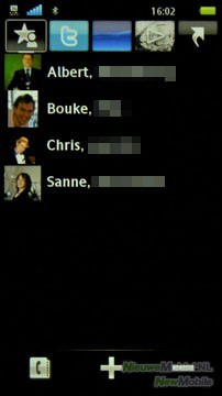 De favoriete contacten optie plaats de favoriete contacten in de tab. Uiteraard moet je eerst wel laten weten welke contacten je favoriete contacten zijn, maar dit is een kwestie van op de grote plus onder in het scherm drukken. Ze worden weergegeven in een lijst en wanneer je een afbeelding aan het contact toe gewezen hebt is deze ook te zien.