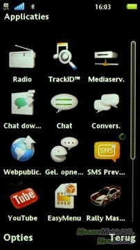 Het menu wordt geopend met de menuknop. Het valt op dat het navigeren door het menu vrij snel en soepel verloopt. Ook de iconen van de menuonderdelen zijn groot en kunnen makkelijk met een vinger worden aangetikt. Er is zogenaamde haptic feedback aangezien er een lichte vibratie door de telefoon gaat bij aanraking van het scherm. Wat we alleen wel missen, door het hele menu van de telefoon heen, is de mogelijkheid om kinetisch te scrollen. Dit was bijvoorbeeld erg handig geweest bij het telefoonboek of berichten. Waar het bij het opstarten van de telefoon nog verrassend was met de tabs, is het menu verre van verrassend. Helaas is dit nog steeds het Symbian S60 5th edition, wat we kennen van anderhalf jaar terug, toen de Nokia 5800 XpressMusic werd geïntroduceerd.