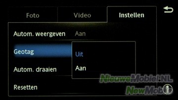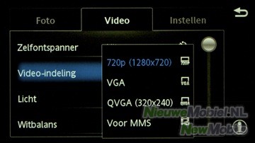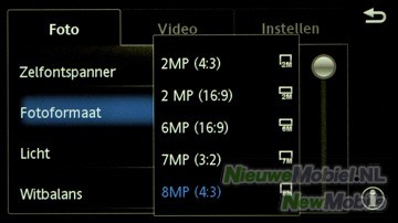 Naast deze instellingen, zijn er in het opties-menu nog meer instellingen te vinden. Hier is het mogelijk om het formaat aan te passen. Zo kan je in breedbeeld (16:9) foto’s nemen, of met aspect ratio 4:3. De breedbeeld optie is trouwens alleen beschikbaar tot 6 megapixels. Met 7 of 8 megapixels kan dit niet. Ook is er een zelfontspanner en beeldstabilisator optie, verder zijn er instellingen voor de witbalans en effecten.