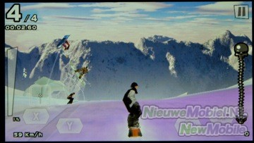 Het andere spel is een snowboard spel, die sommigen van jullie wel kennen van de spelconsoles. Ook met dit spel wordt er gebruik gemaakt van de accelerometer, zij het niet alleen voor het sturen, maar ook voor het maken van snelheid. Verder is er voor springen, grinden etc. een viertal virtuele knoppen aanwezig. Dit zorgt er voor dat dit spel wel enige tijd nodig heeft om onder de knie te krijgen.