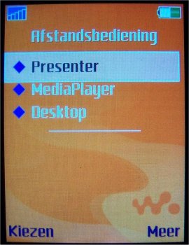 Externe besturing is een onderdeel in het menu waarmee men een PC of laptop kan besturen. Het gaat hier om drie verschillende opties genaamd: Presenter, Media player en Desktop. Door het toestel aan een PC of laptop te verbinden via een Bluetooth verbinding wordt het programma gestart. Presenter maakt van het toestel een draadloze afstandsbediening die men tijdens het presenteren kan gebruiken. Media player is bedoeld om de muziek speler in de PC te bedienen en de laatste optie genaamd Desktop geeft de mogelijkheid programma鈥檚 te starten op de PC. Alle drie de opties genereren eigen functies achter de toetsen op het toetsenbord corresponderend met de gekozen optie. De centrale joystick neemt de bewegingsfuncties van de muis over.