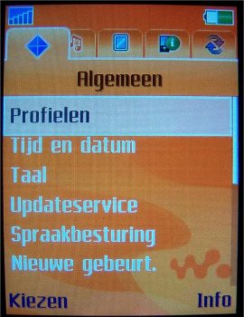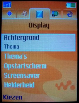 Binnen het menu-onderdeel Instellingen zijn alle zaken ondergebracht die het mogelijk maken de telefoon compleet naar eigen inzicht in te stellen. De gebruikersinterface biedt hier een viertal tabbladen aan waarop de verschillende instellingen gegroepeerd staan. Op het tabblad Algemeen zijn onder andere de instellingen voor tijd, datum, taal te vinden. Ook de individualiseerbare profielen en blokkeringen hebben hier een plaats gekregen. Helaas, is het nog niet mogelijk om de tijdsinterval van de automatisch blokkering in te stellen. Via het tabblad Geluiden & Signalen zijn onder meer belvolume, beltoon en berichtsignaal aan te passen. Voor beeldscherminstellingen als achtergrond, thema en screensaver kan men terecht op het derde blad, Display. Het laatste blad heet Gesprekken. Hier is onder andere informatie te vinden met betrekking tot de gevoerde gesprekken, zoals kosten en tijdsduur. Hiernaast kunnen de diverse omleidingen en doorschakelingen ook op dit tabblad worden teruggevonden en ingesteld. In de W900i is ten opzichte van de S700i een vijfde optie toegevoegd. Dit is de optie Verbindingen, waaronder men alle instellingen vinden die te maken met de connectiviteit van het toestel, zoals de GPRS en de Bluetooth instellingen.