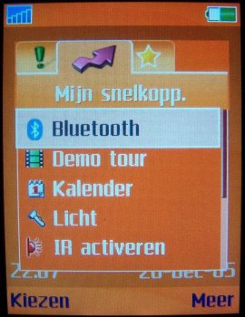 Via snelkoppelingen kunnen veelgebruikte toepassingen rechtstreeks benaderd worden vanuit de standby-stand. De bedieningstoets omhoog bewegen kan dan bijvoorbeeld het adresboek of de agenda openen. Men kan deze snelkoppelingen zelf instellen.