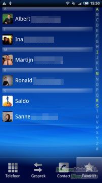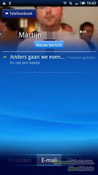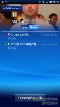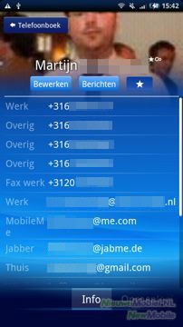 Voor een individuele contactpersoon zijn meerdere tabbladen te bekijken met daarop de updates van gekoppelde sociale netwerken, contactinfo, oproeplogboek, berichten, e-mail en gemaakte foto’s waar je die persoon op gemarkeerd hebt.