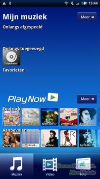 Mediascape bestaat uit de onderdelen muziek, video en foto. Op het muziektabblad staan de kopjes onlangs afgespeeld, onlangs toegevoegd, favorieten en koppelingen naar de PlayNow muziekwinkel. Wanneer je een nummer afspeelt kan je via de infinitytoets zoeken naar nummers van dezelfde artiest op de geheugenkaart, zoeken in de PlayNow winkel, op YouTube zoeken of een webzoekopdracht naar de artiest uitvoeren. Helaas ontbreek een widget voor Mediascape of überhaupt het afspelen van muziek.