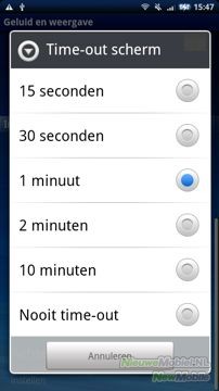 Behalve het instellen van de time-outtijd van de schermverlichting zijn er geen verdere mogelijkheden om het uithoudingsvermogen te verbeteren. De batterijindicator op de statusbalk is overigens niet erg duidelijk.