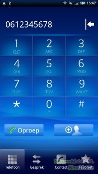 Een gesprek starten kan jammer genoeg niet doormiddel van smartdial. Tijdens het bellen zijn de functies toetsenblok weergeven, wisselen tussen gesprekken, gesprekken samenvoegen, oproep toevoegen, in de wacht, dempen, luidspreker en Bluetooth toegankelijk. Er kan ook teruggekeerd worden naar het startscherm. De nabijheidsensor zorgt ervoor dat het scherm wordt uitgeschakeld als het toestel bij het oor wordt gehouden. Het gespreksoverzicht is niet meer dan een lijst met de gemiste, ontvangen en uitgaande oproepen. Bij een afzonderlijk contact kan ook de oproepgeschiedenis met die contactpersoon bekeken worden.