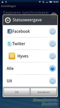 Twitter, Facebook en Hyves vrienden kunnen ook handmatig gekoppeld worden aan contactpersonen. Helaas worden alleen de statusupdates op het toestel binnen gehaald en niet een profielfoto en contactgegevens. Terwijl je bij Twitter en Facebook uit al je vrienden kan kiezen kan voor Hyves alleen gekozen worden uit vrienden die hun status hebben geüpdate. Voor alle drie de netwerken kan een update interval worden ingesteld.