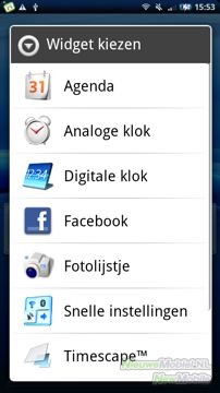 Er is ook een Timescapewidget dat op één van de startschermen geplaatst kan worden. Behalve dat je de laatste gebeurtenis kan zien is dit helaas niet meer dan een snelkoppeling om Timescape te openen. De Timescape-interface kan ook als standaard startscherm worden ingesteld in plaats van de drie normale startschermen. Echter dit raden wij af want zowel het menu als Timescape wordt hier ontzettend traag van.