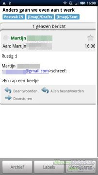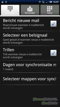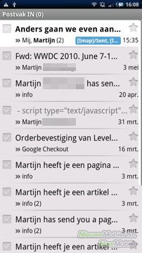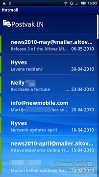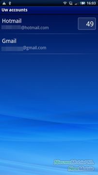 Naast het e-mailaccount dat gekoppeld is aan Timescape kan je met de e-mailapp nog extra accounts synchroniseren. De verschillende accounts worden compleet gescheiden gehouden op het toestel.