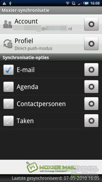 Voor synchronisatie met een Exchange server is een apart pakket met programma’s onder de naam Moxier geïnstalleerd. Dit kan gebruikt worden voor mail, agenda, contactpersonen en taken. Voor chat is Google Talk aanwezig.