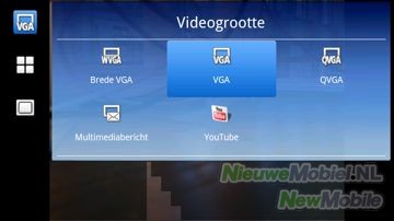 Voor video’s kunnen grootte, scènes, opnamemodus en helderheid in het zoekscherm worden ingesteld en via het menu verlichting, zelfontspanner, lichtmeting, witbalans, beeldstabilisator, sluitergeluid en microfoon. Video’s maakt de Xperia X10 met een maximale resolutie van 800 x 480 pixels en 30 fps.