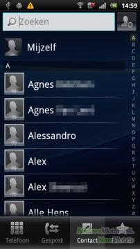 Het telefoonboek kan worden opgeroepen middels de contacten-applicatie. Hiervan is een snelkoppeling aanwezig op het homescreen. Eenmaal in het telefoonboek is het makkelijk zoeken naar de persoon die je wilt bellen. Ook is het mogelijk een direct overzicht te krijgen van je favoriete contacten. De lijst met contacten kan bovendien gefilterd worden met filters als 'enkel contacten met telefoonnummer', of 'enkel online contacten'.