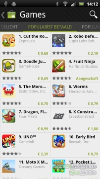 Op de Sony Ericsson zijn standaard geen games aanwezig. Wil je toch graag gamen op je telefoon dan kun je diverse games downloaden in de Android Market.