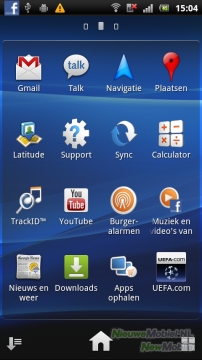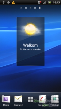Een andere eigenschap van Xperia UI zijn de vijf homescreens. De homescreens zijn vanzelfsprekend naar eigen wens in te richten met widgets en programma's. Je kunt gemakkelijk door de screens bladeren door te 'vegen'. De snelkoppelingen naar media, berichten, applicaties, contacten en telefoon blijven daarbij wel permanent aanwezig.