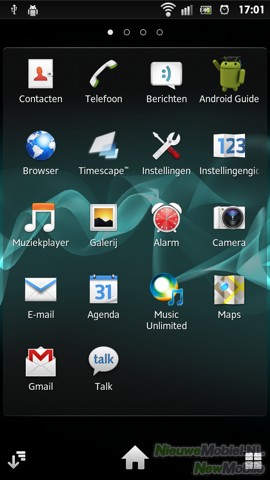 Sony gebruikt Android voor haar smartphone en dat is terug te zien in de besturing en menu's. Toch heeft Sony een eigen schil gemaakt die op punten veel lijkt op dat van de iPhone, of lijkt de iPhone op de Xperia S? Zo bestaat het menu uit pagina's met icoontjes van apps waarin je horizontaal kunt bladeren. Jammer genoeg kun je niet van uiterst links naar de rechter pagina bladeren. Dat zou handig zijn omdat je iedere keer dat je het menu opent op de eerste pagina begint.
