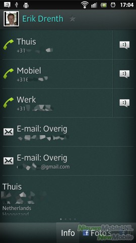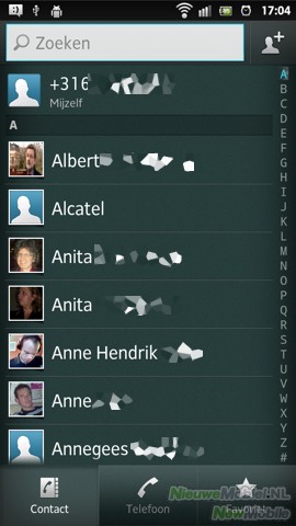 De contactenlijst is dezelfde app als de telefoon-app. Het verschilt alleen in welk tabblad er geopend wordt. Toch zijn twee aparte icoontjes wel handig. Het contactoverzicht is duidelijk en erg herkenbaar voor Android-gebruikers. Sony heeft slechts kleine aanpassingen gemaakt zoals de nauwe Facebook-ondersteuning.