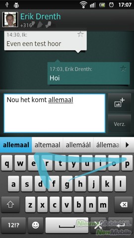 Berichten worden als conversatie weergegeven en zijn desgewenst ook met een ster te markeren als favoriet. Zo kun je bepaalde berichten van speciale personen snel terugvinden. De grootste verdienste van Sony gaat echter uit naar het toetsenbord. Naast als regulier toetsenbord kun je deze op een Swype-achtige manier gebruiken waarbij je woorden invoert door van letter naar letter te vegen. Het is geen Swype maar werkt wel zo, maar bovenal het werkt bijzonder goed. En mocht onverhoopt een verkeerd woord gekozen worden dan is een alternatief zo gevonden boven het toetsenbord.