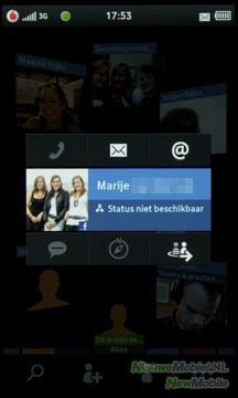 Grootste kritiekpunt dat we hebben is de interface van het People-gedeelte op de telefoon. Zo is het overzicht erg ver te zoeken en is het allemaal behoorlijk omslachtig. De interface bestaat uit een 3D-weergave met voor elk contact een eigen zwevend visitekaartje. Als je dan je Google-, Facebook- en MSN-contacten hebt toegevoegd krijgen die allemaal een eigen visitekaartje. Dubbele contactpersonen worden niet automatisch samengevoegd en het kan ook niet handmatig op de telefoon worden gedaan. Dit zul je zelf op de Vodafone 360-site moeten doen en daar gaat dus behoorlijk wat tijd in zitten. Je kan op de telefoon contacten wel onderverdelen in groepen die elk een eigen tabblad krijgen en ook de contacten van de webaccounts worden in een aparte groep ingedeeld maar heb je in elk account veel vrienden dan schiet je hier nog weinig mee op. Door nog een keer op de People-toets te drukken worden contacten in een alfabetische lijst weergegeven.