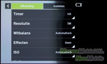 In het zoekscherm kunnen de fotostand, scène, flitser en helderheid gewijzigd worden. Bij de instellingen kunnen timer, resolutie, witbalans, effecten, ISO, meting, antitrilling, breed dynamisch beeld, beeldkwaliteit, contrast, scherpte, verzadiging en autofocus ingesteld worden. De camera is wel wat onhandig geplaatst en dat vergt wat oplettendheid bij het vasthouden van het toestel.