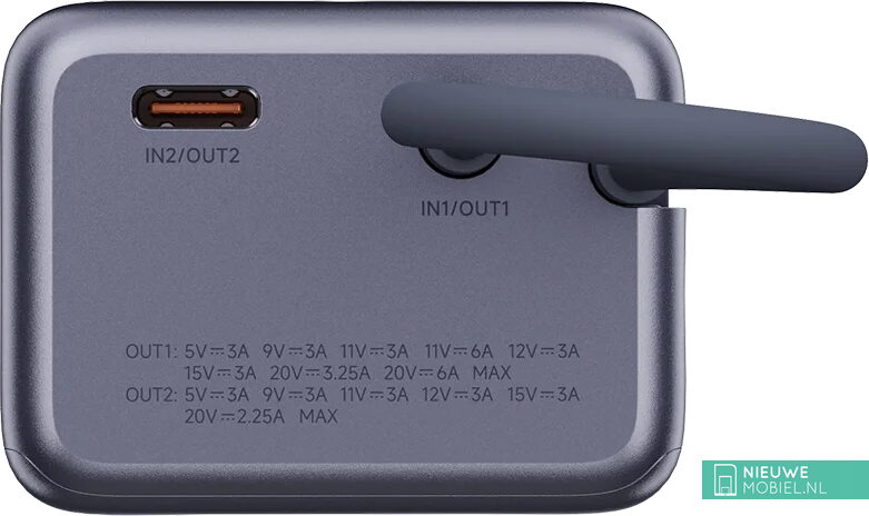 Dit product komt zonder oplader. Gebruik een bestaande USB-oplader of schaf er één aan. De 165W Power Bank 10.000 mAh kan met maximaal 120 Watt aan vermogen opgeladen worden.