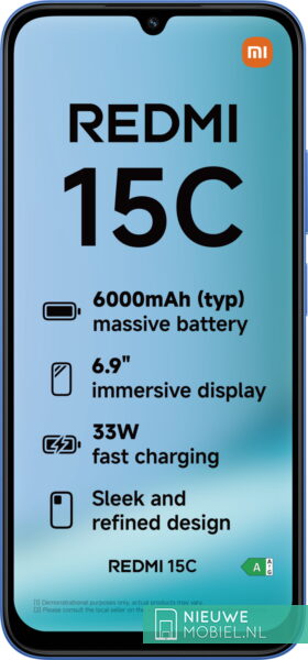 De Xiaomi Redmi 15C is een 4G-telefoon met grote 6000 mAh accu en voordelige prijs. Je kunt meerdere dagen vooruit met een volle batterij, content bekijken op het 6,9" grote scherm en scherpe foto's schieten met de 50MP camera. De behuizing is waterbestendig en ziet er bovendien stijlvol uit (vooral de blauwe en oranje versie). Het is alleen geen krachtpatser.